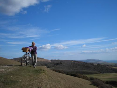 Truth be told we only spent one of the three days on our bikes! That was quite enough, for we hadn’t chosen one of the many flat and easy trails that form a web across the island for our debut bike ride of 2010. Oh no – we went on a very challenging route along the Tennyson Trail, which follows an ancient track along a ridgeway, like the spine of the island. Mr B was very good, but I must admit I ended up pushing my bike on most of the very steep uphill bits, and then chickening out and creeping slowly down the sharp descents, my brake blocks biting hard. Not so Mr B – hardy creature that he is. Bombing up hills, whizzing down them again! Although he could hardly move that night and certainly needed his massage at the spa hotel where we stayed! I think he slept for about ten hours that night.
