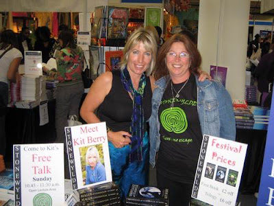 I gave my talk about “Reconnecting with Nature” to a lovely audience, feeling a bit nervous about speaking in an open lecture area at such a large event. I had to wear a microphone head-set which felt very odd, but did leave my hands free to gesticulate wildly when I became excited and also to hold up the labyrinth, Wheel of the Year etc to demonstrate. I had a strange moment when I realised, about ten minutes into my talk, that the man grinning encouragingly at me from the audience was none other than my long-lost cousin Ben Berry! He’d cheekily left an exhibition he was doing at Earl’s Court to sneak across to my talk at Olympia, and his presence did throw me for a minute or two as I don’t use notes or anything for my talk.
