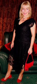 We were given a goody bag of books as we left (all very welcome – each one is a title I want to read) and my wonderful Mr B was waiting outside for me. We had a quick supper in a nearby restaurant with some other authors (I’ve done enough name-dropping so won’t bore you with more) and then drove back to Reading. It was a fantastic night altogether, and I’d had just the right amount of champagne too. These photos of me were taken at home by Mr B before we left.