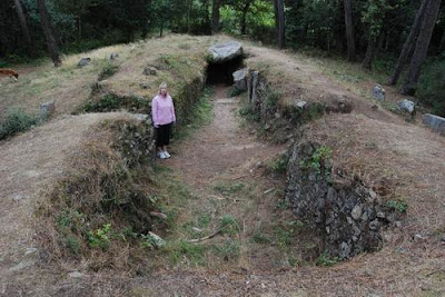 We didn’t excavate. It was getting late and we needed to get back. It was also our last day there, so we resolved to return another year and find our own secret dolmen again. Mr B took a close up photo of what we could see of the end-chamber bit – you can see this in the fourth photo above. We may be wrong of course about it being a dolmen, but this pit was most definitely a man-made thing. It had filled up with leaves and earth, and there were even trees growing inside, but it was lined with a mixture of huge stones and the dry-stone walling and was big. All around it there were massive megaliths lying on the ground, camouflaged with thick moss. We were pretty sure that we’d stumbled on an ancient site, and I really can’t tell you how exciting that felt!