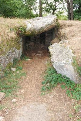 These sunken dolmens are so interesting, and a different concept to the ones above ground. We’d already seen the passage-tomb covered by a cairn on the Island of Gavrinis. We’d also seen the huge upright dolmen (the most common sort I believe) at La Loge aux Loups. But this sunken one was a new thing to me and I found it fascinating. I imagined it all covered over, with the entrance and exit at the sides. I could picture people dressed in their ceremonial best, the interior decorated beautifully and lit with guttering flames, our ancestors taking part in some sort of sacred ritual.