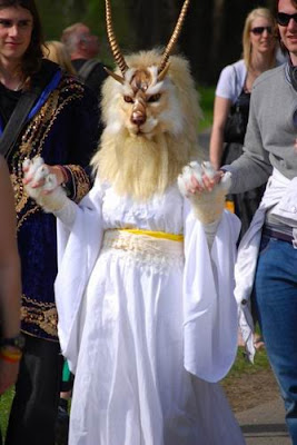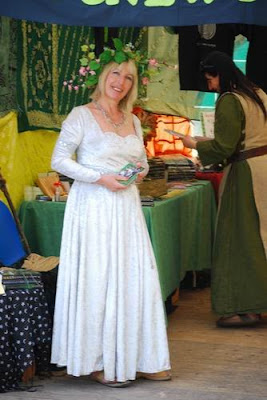 Just down the lane from us were Josephine Wall and Linda Ravenscroft. Jo looked like a beautiful green fairy and Linda was a goddess of steam punk! Both (and their partners) were so friendly and we spent a lot of time with them. It wasn’t till we got home we realised we hadn’t taken any photos of them! We also met Paul Hoffman and Professor Rotherham, fellow writers, and we were lucky enough to be chosen to take part in the Royal Parade each day. It was all such fun! Beer, cider and mead were flowing, it was very hot, very crowded, completely full on, yet there was no trouble whatsoever. Everyone had a magical time and I can’t tell you how much we enjoyed ourselves. It was lovely to meet up with many Dutch readers who’d bought Stonewylde books last September at the event at Arcen. Many of our Dutch members of the Stonewylde Community Site came to say hello too, and I gave three talks to audiences about the Green Man and Beltane.