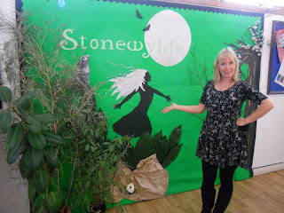 The next morning I was up bright and early and left for Pilton Community College. Lyn and Trish, the librarians, had put an enormous amount of work into preparing for this special day. Trish had decorated the library as Stonewylde, with hares, barn owls, a Green Man and the Wheel of the Year! It was very beautiful and as I walked in, I was moved to tears to see what a beautiful tribute she’d paid to my books.